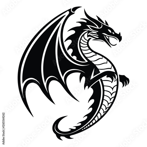 A powerful black dragon with sharp claws and wings, captured in a striking pose, perfect for use in mythical, adventure, or fantasy-themed visuals.