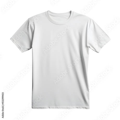 A pristine white crew neck tshirt, isolated on transparent background, displays a smooth, unblemished surface