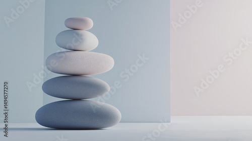 A pyramid of perfectly balanced stones in neutral tones on a gradient background