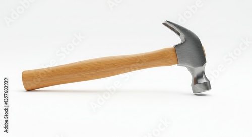 A realistic hammer with a smooth wooden handle and polished steel head showcased in high-detail product photography