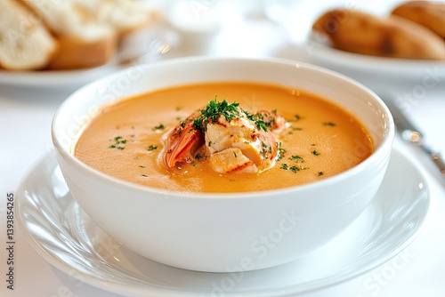 A realistic photo of Lobster Bisque, hyper-realistic, isolated on white