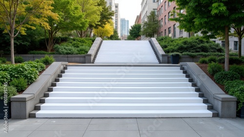 A realistic stair wrap mockup outdoors with blank fronts for branding