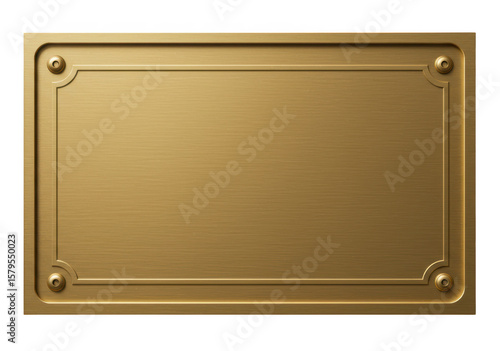 A rectangular gold metal plate isolated on transparent background
