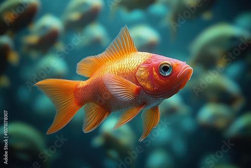 A red fish swimming among green fish, symbolizing individuality and standing out