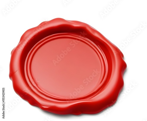 A red wax seal or stamp on a white background
