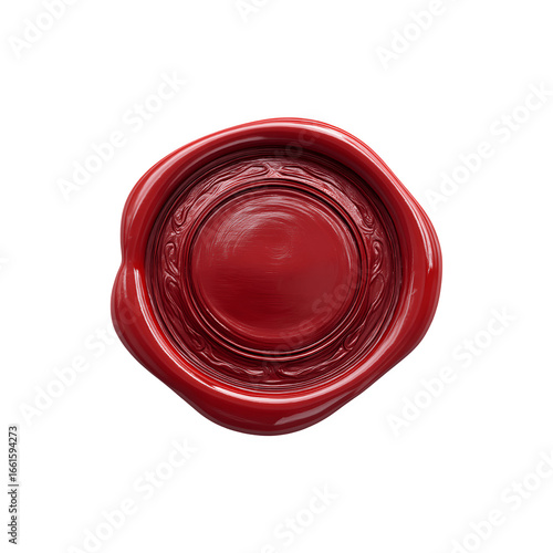 A red wax seal with a classic, rounded shape and glossy finish