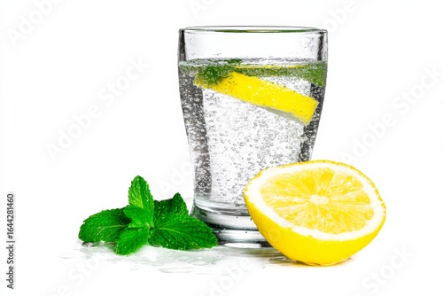 A refreshing drink with lemon, mint, and sparkling water, perfect for a hot day.