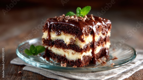 A rich chocolate cake layered with creamy custard and topped with melted chocolate, this dessert is a chocolate lover's dream, perfect for special occasions or everyday indulgence.