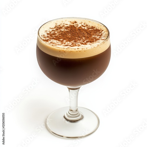 A rich espresso cocktail with a sprinkle of cinnamon, deep and flavorful, isolated white background