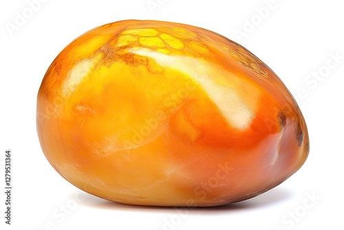 A ripe persimmon with a smooth, orange surface, isolated on a white background