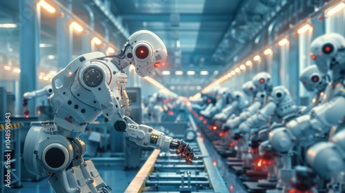 A robotic arm on an assembly line in a factory setting.