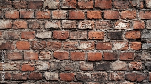 A rustic brick wall with visible wear and tear, including chipped bricks and mortar, creating a rugged appearance