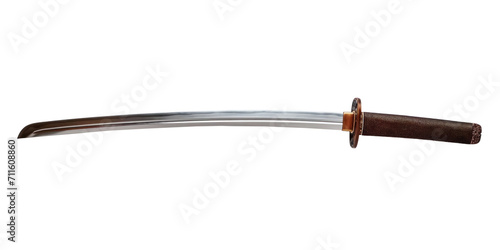 A samurai sword with a sharp blade, transparent or isolated on white background