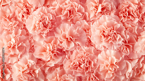 A seamless background of repeating carnation patterns in soft pink tones, fading towards the edges