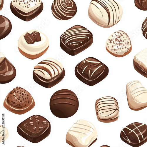 A seamless pattern illustration of various delicious chocolates