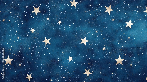 A seamless pattern of tiny stars on a deep blue background
