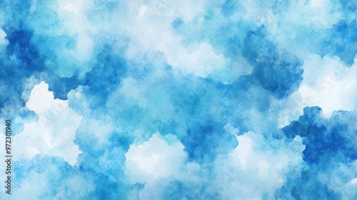 A serene blue watercolor background featuring soft clouds and gentle gradients.