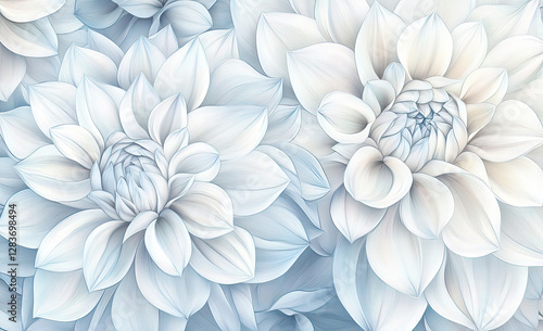 A serene illustration of white flowers with intricate details and soft colors.