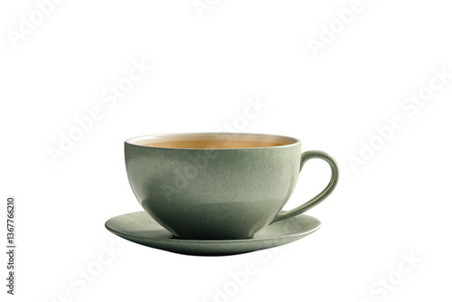A Serene Moment Of Quiet Contemplation With A Warm Cup Of Tea In A Sage Green Speckled Ceramic Mug And Saucer Against A Clean Isolated on Transparent Background