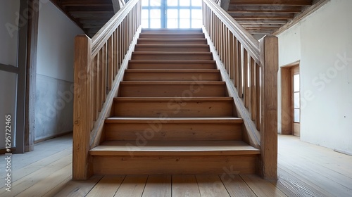 A serene view of a wooden staircase leading to a bright room filled with natural light enhancing the calm atmosphere : Generative AI
