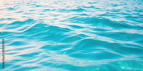 A serene view of the ocean surface, with gentle waves rippling across the turquoise water, creating an abstract pattern of light and shadow.