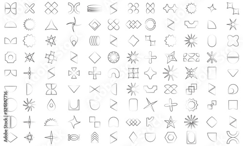 A set of graphic elements. Abstract geometric figures. Decorative minimalistic brutalist forms.