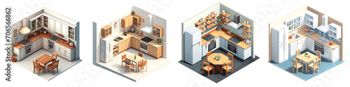 A set of Isometric view of the Kitchen interior isolated on a transparent background PNG