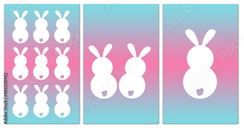 A set of postcards with a picture of a hare in minimalism. Background for printing on paper, wallpapers, covers, textiles, fabrics, banner postcard Happy Easter, happy birthday, wedding, mother's day