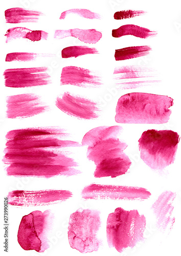 A set of watercolor brush strokes of pink and brown color on texture paper.