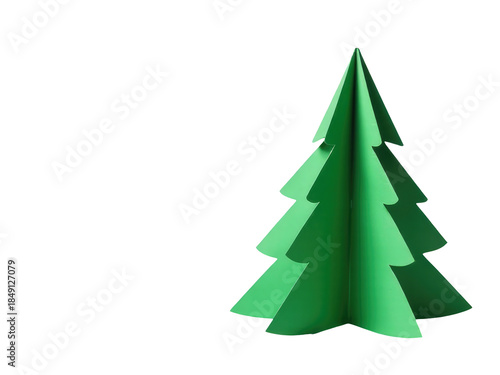 A simple and minimalist green paper Christmas tree on a white background, ideal for holiday greetings or winter-themed designs