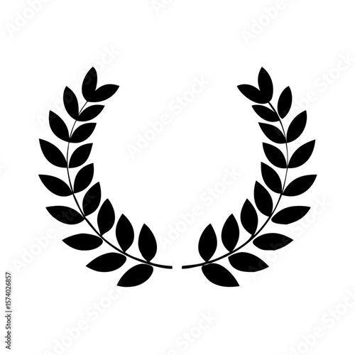 A simple black laurel wreath isolated on white background symbolizes victory and achievement