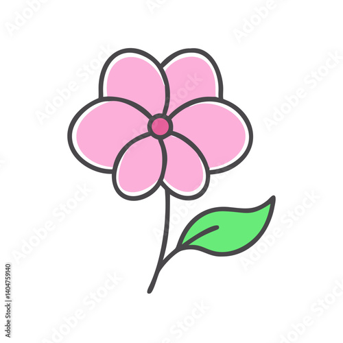 A Simple Drawing of a Pink Flower with a Single Green Leaf