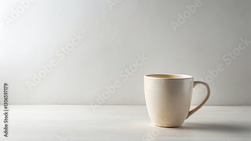 A Simple, Elegant Cream-Colored Mug on a White Table Against a Neutral Background