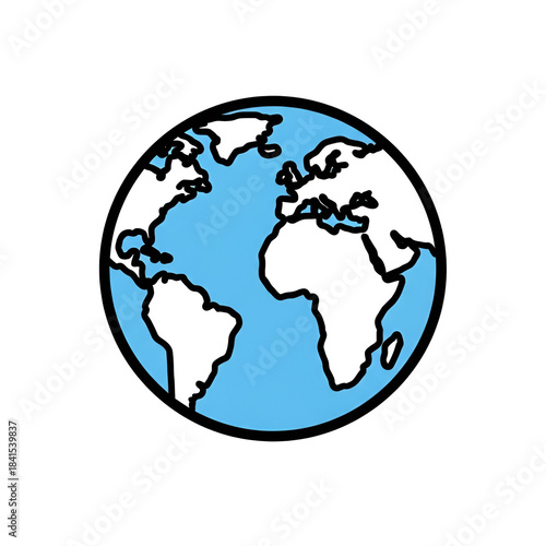 A simple illustration of the world globe with continents and oceans in a black outlined circle on transparent background