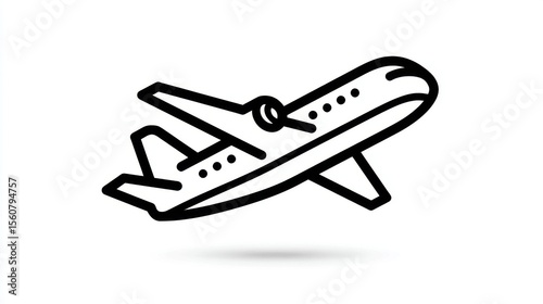 A simple line drawing depicts an airplane taking off, emphasizing its aerodynamic shape and features while set against a plain backdrop. The design highlights the aircraft's wings and fuselage.