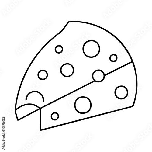 A Simple Line Drawing of a Wedge of Swiss Cheese with Many Holes