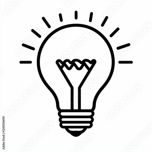 A simple line drawing of an icon, in black and white, featuring a light bulb. The design should be minimalistic with clean lines to convey simplicity, without any background detail