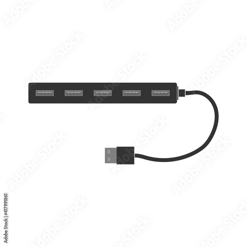 A simple rectangular USB hub with one row of USB connectors. A splitter for a computer or laptop. Flat vector illustration