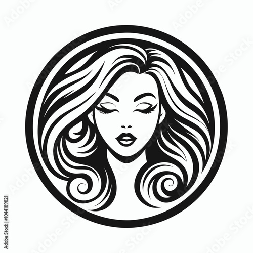 A simple round logo for a beauty salon with a beautiful girl with perfect hair.