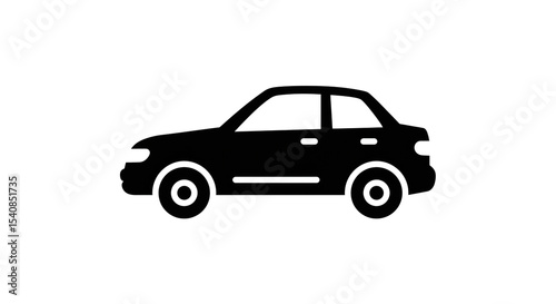 A simple silhouette of a car with visible wheels and windows on a plain white background design icon