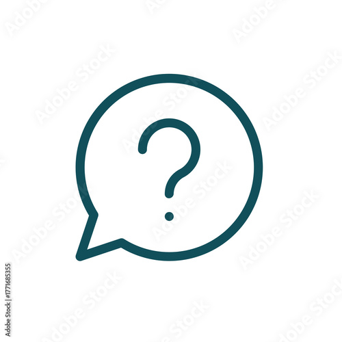 A simple teal question mark inside a speech bubble icon isolated on transparent background