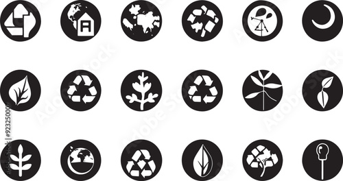 A simple vector icon set featuring a environmental activism, green technologies, zero waste, and ecosystem restoration
