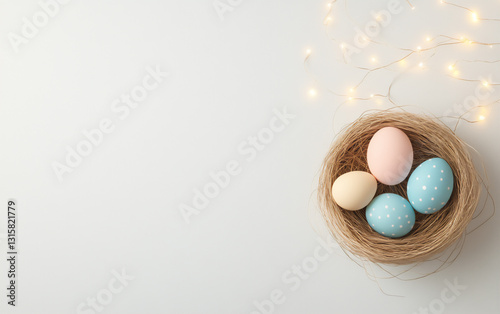 a simple yet charming easter background featuring an empty nest with decor