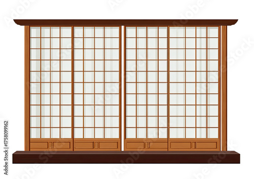 A simplified, flat illustration of traditional Japanese shoji sliding doors