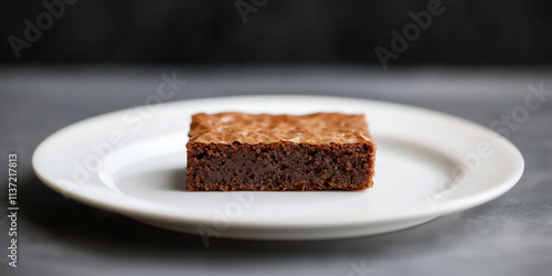 A single brownie square placed neatly on a wh