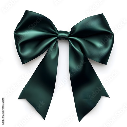 A Single Dark Green Satin Bow on a White Background