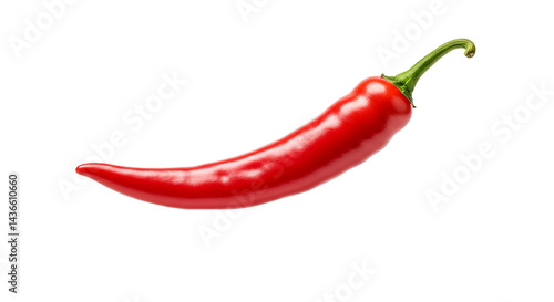 A single red chili pepper with a green stem isolated against a plain black background in a studio shot