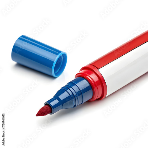 A single whiteboard marker shown isolated on a white background, used for writing or drawing