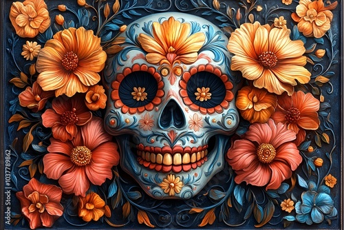 A Skull Adorned with Beautiful Flowers.