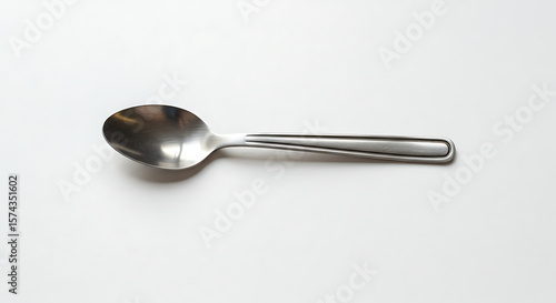A sleek and simple silver metal spoon, meticulously isolated on a clean, bright white background, ideal for culinary and dining related designs.